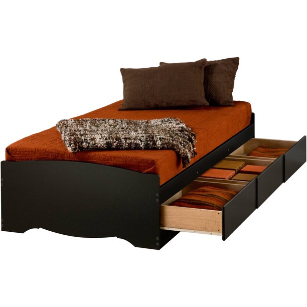With its extra length and storage space, the twin xl mate's platform storage bed with 3 drawers is perfect for the teen or college student in your life. Prepac espresso twin xl mate's platform storage bed with 3 drawers. The twin mate's platform storage bed with 3 drawers does double duty as a bed and dresser. Mattress support slats are plywood. This twin platform bed features three handy underbed drawers with plastic slides.