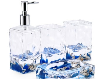 First, straighten up the vanity with sink accessories: Blue lagoon seashell coastal bath accessories. Ending may 12 at 2:16pm pdt. Kitchen & pantry storage kitchen pantries bakers racks kitchen trash cans kitchen canisters plastic storage containers dish racks pot racks wine storage. Antique vanity set ring box, hair brush, comb & hand mirror vintage 4 piece set.